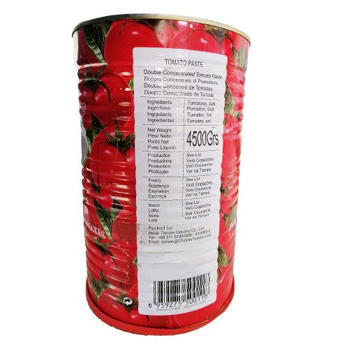 4.5kg canned tomato paste is an extra-large packaging size designed for intensive industrial use and large-scale food preparation, offering maximum efficiency for high-volume operations.
